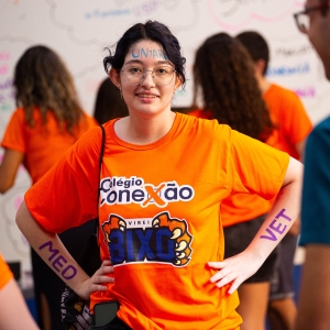 “Eu acho que o diferencial do Conexão, além do nível da aprendizagem que a gente recebe, é a questão do acolhimento entre os alunos e a equipe pedagógica. Os professores, a coordenação, os funcionários...Todo o time faz da escola um espaço de muito suporte e parceria. Carinho e gratidão enormes por cada um!”