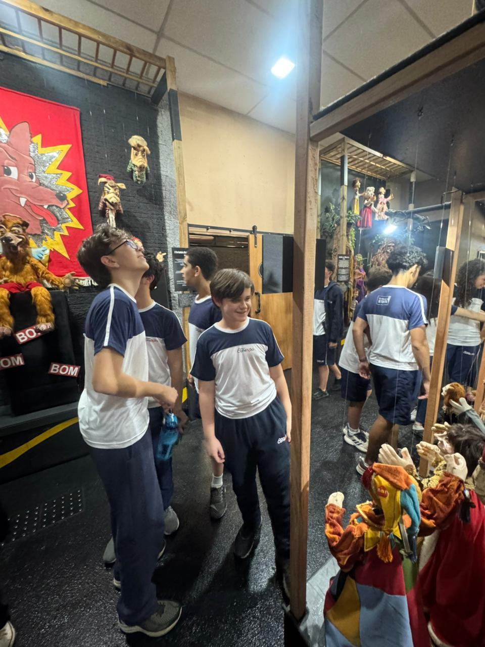 Durante a visita, os alunos puderam conhecer diferentes tipos de bonecos utilizados em diversas manifestações artísticas e culturais, como teatro de bonecos, marionetes, fantoches e máscaras. Cada peça visitada carregava uma narrativa, convidando os estudantes a refletirem sobre as múltiplas formas de expressão humana, tradições populares e construção da identidade cultural.